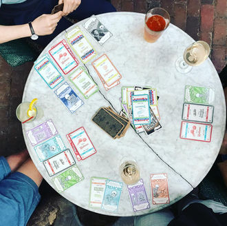 In addition to being wickedly fun to play, Side Effects is a gorgeous piece of art within itself — the gilded box contains 89 beautiful cards and an instruction booklet.